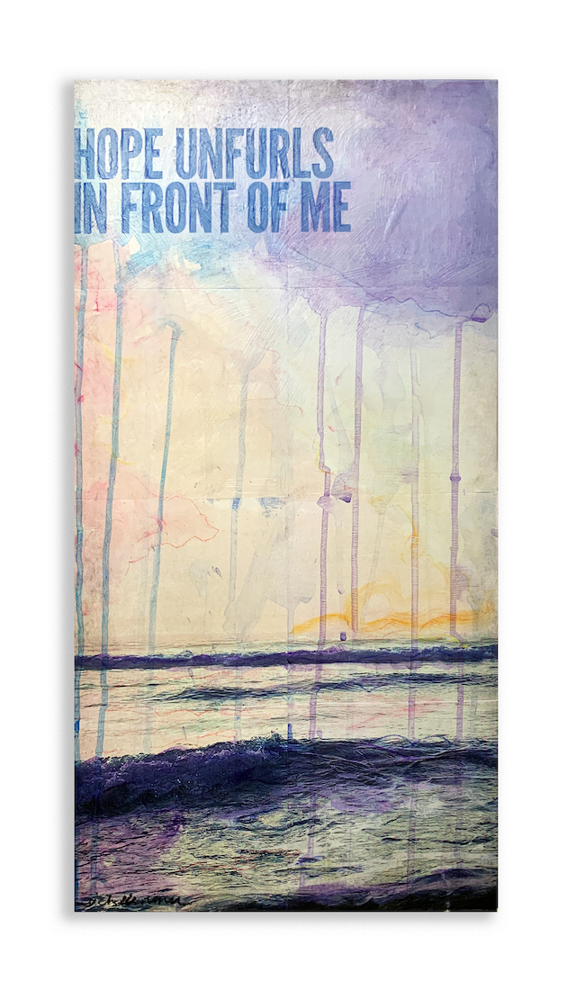 This group of work celebrates the many beautiful horizons I have looked to in my life, which always leave me contemplative and filled with wonder. Together, these pieces feature a recent poem written to capture my thoughts and the many dreams I have for my eldest daughter.